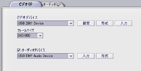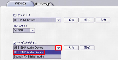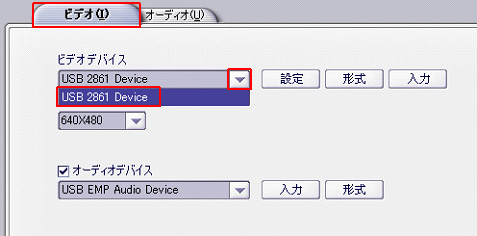ビデオタブよりビデオデバイスボックスをクリックし、「USB 2861 Device」をクリックして選択します。