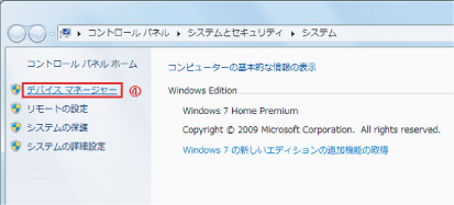 「システム」ウィンドウが表示されますので、左側の「デバイスマネージャ」をクリックします。