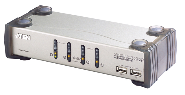 KVMPスイッチCS-1734Aは、4ポートKVMスイッチに2ポートのUSBハブが搭載されています。また、PS/2とUSBのデュアルインターフェースに対応しています。