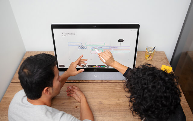 オフィスや自宅のデスクで利用する際の最適な端末です。カメラ・マイク・モニターが一体となっており、これ1つで会議に参加することができます。また、お使いのPCを接続して会議でコンテンツを共有したり、Cisco Desk シリーズをPCのディスプレイとして使用することもできます。