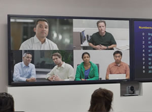 RealPresence Group 700/500 シリーズでは、複数拠点とのビデオ会議をスマートに実現する多地点接続機能を内蔵。 オプションライセンスを導入すれば、簡単に多地点ビデオ会議をすぐに行うことができます。
