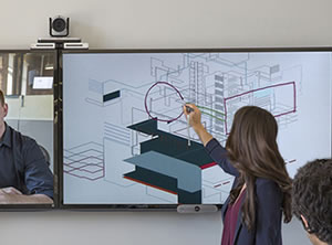 ディスカッションやブレインストーミング時に最適な”円座”でのミーティングスタイルでのコミュニケーションを可能にするビデオ会議システム。人をコラボレーションの中心に据えた画期的なスタイルが、チームコラボレーションに変革をもたらします。