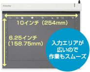 タブレットの入力エリアは10インチ×6.25インチ(254mm×158.75mm)です。
