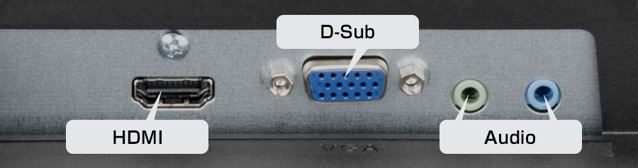 HDMI x1、D-Sub x1の映像入力端子と、オーディオ入力 x1の音声端子を搭載しています。